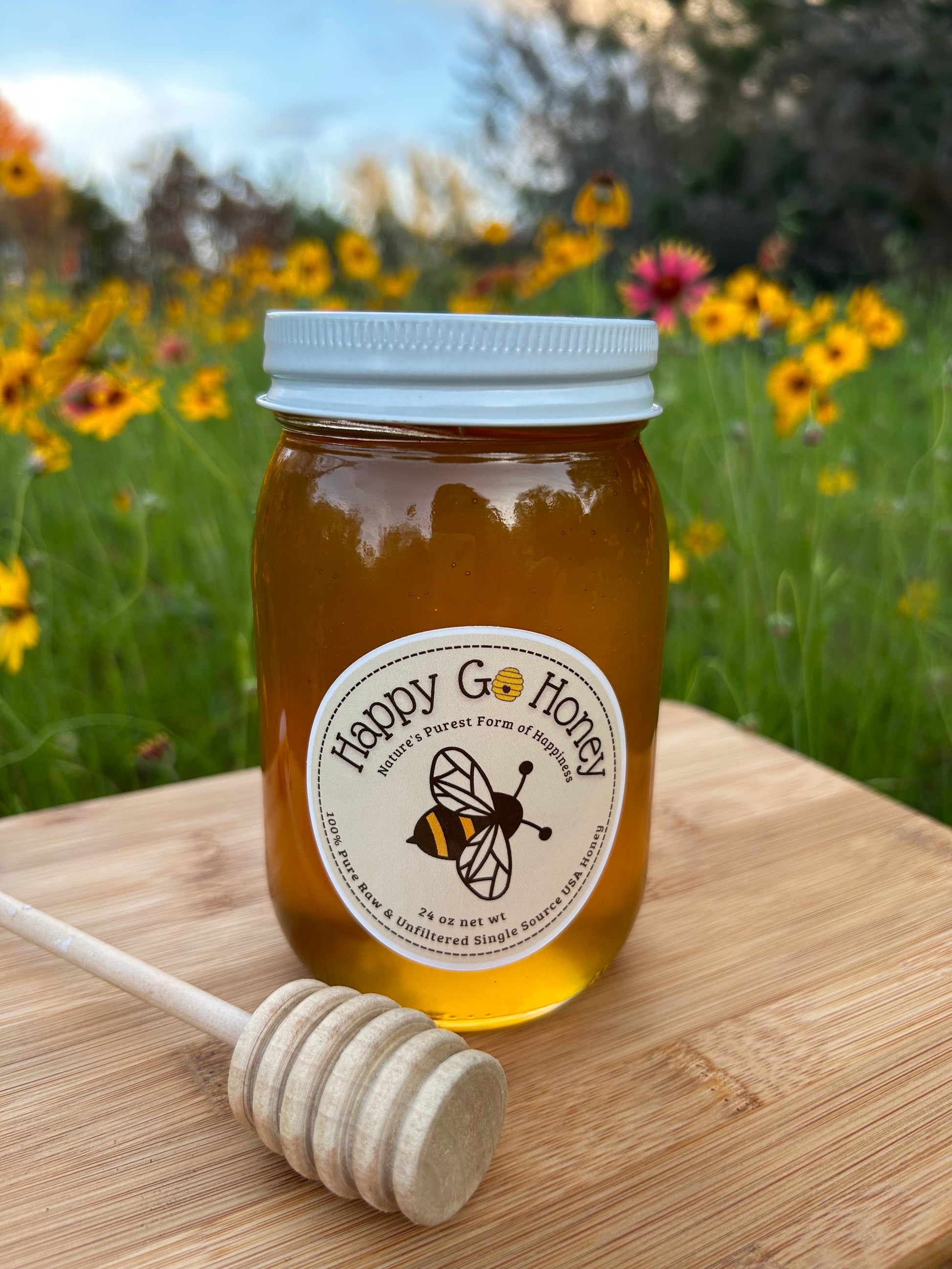 In December 2022, we started Happy Go Honey, an honest honey you don't have to worry about. Our honey is only sourced from our own American beehives, and it's packed with nutrients, antioxidants, anti-inflammatory properties, and so many other health benefits due to its raw, unfiltered state.